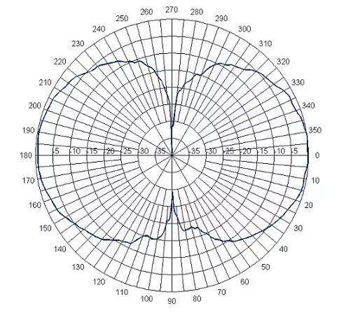 因为立体的绘制困难,我们也经常用水平面方向图和垂直面方向图来表示,如下是水平方向图的一个例子: