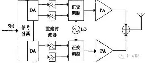 LINC 的一个很大特点是它可以使用非线性较强的功率放大器,因而具有非常高的效率,理论上效率可以达到 100%。LINC 使用混合合成器来完成功率合成,实现高隔离度和确定的阻抗。和前馈技术相似,LINC 对相位和幅度的不平衡非常敏感,LINC 系统的两个射频回路的相位和增益必须匹配才能确保在合成器正确合成,同样需要采用自适应增益和相位调整保信号不失真。此外,LINC 需采用宽带放大器才能工作正常。 图2 LINC技术