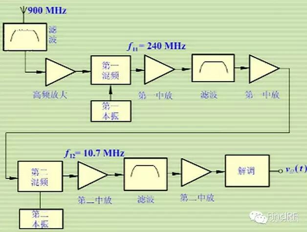 一次混频到高中频,二次混频到低中频,在一次混频后即能很容易将镜像频率滤除。