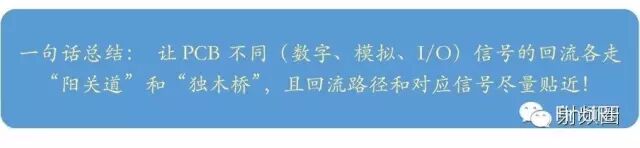 当然,完全分割不同区域的地也不是不可以。若信号频率比较低,可以缝隙之间用铁氧体磁珠相连,并紧贴信号线,使低频回流畅通无阻,对高频噪声则呈高阻,具体的方式可以是酱紫滴: