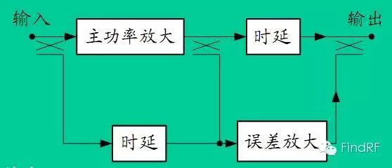 前馈是功放线性化技术中发展最迅速,也是最先进的方法。前馈技术起源于“反馈”,不同在于把输出的信号处理后再向前耦合到功放的输出端。射频信号进入前馈网络后,进入功放部分的非线性失真会输出需要的主信号和三阶交调干扰信号,提取相位相反的三阶交调分量放大输出到主放大器的环路,就可以抵消主放大器支路上的非线性分量,改善功放的线性度。
