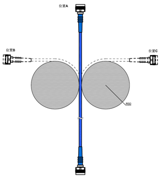 弯曲半径:50mm,这个尺寸参照了电缆规格书中的要求,以及正常的使用条件;