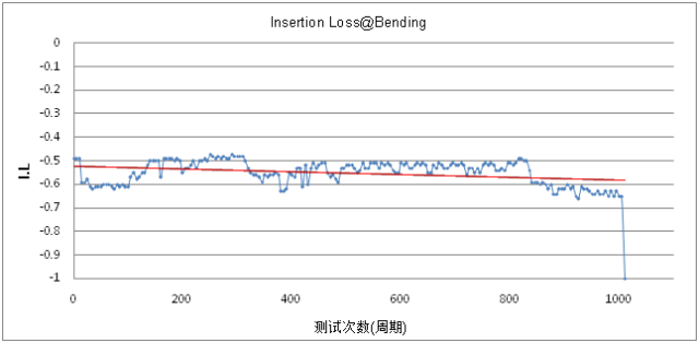 测试数据:弯曲20个周期,即弯曲80次测试一次VSWR和插入损耗并记录,测试频率为1GHz。