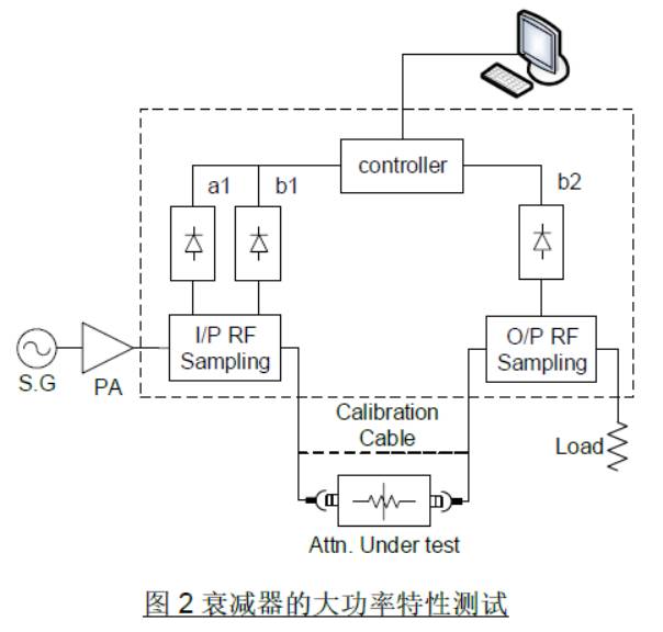 将b2 减去a1,即可得出被测衰减器在大功率状态下的衰减量,而b1 和a1 的比值即为驻波比。